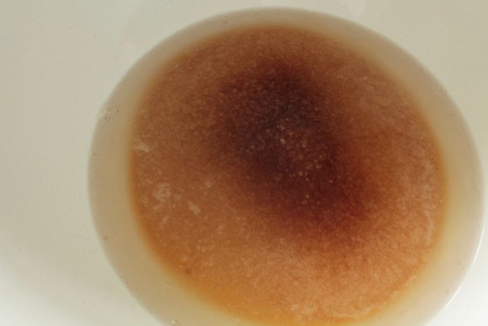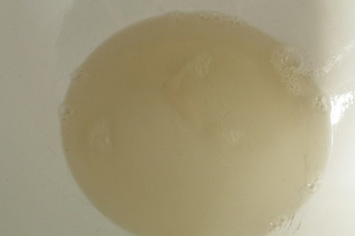 Рассол слегка подогреть (чуть теплее температуры руки, 40°), добавить соду, перемешать. Стакан емкостью 200 мл.