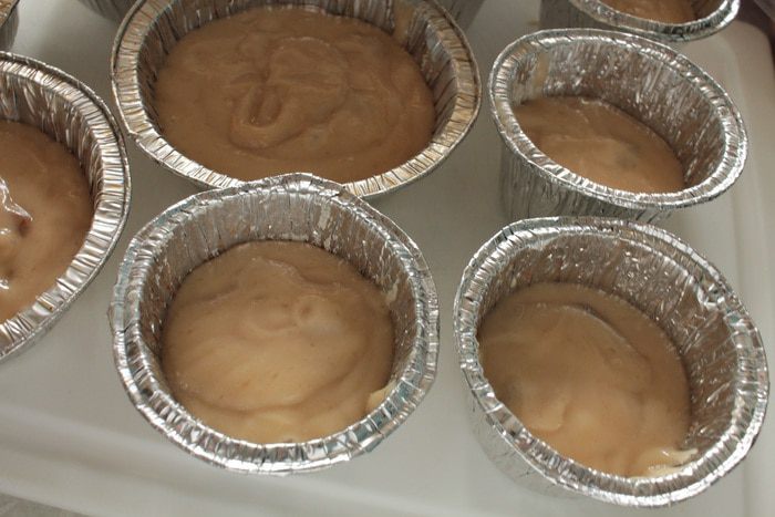 Дно формочек смазать растительным маслом, посыпать манкой, заполнить тестом на половину.