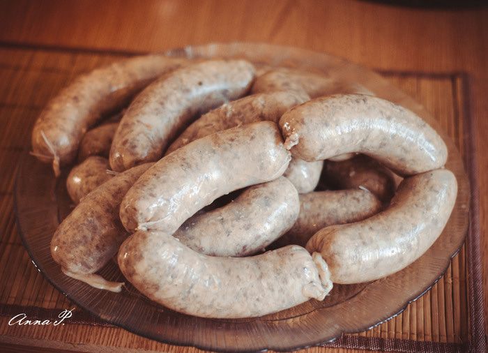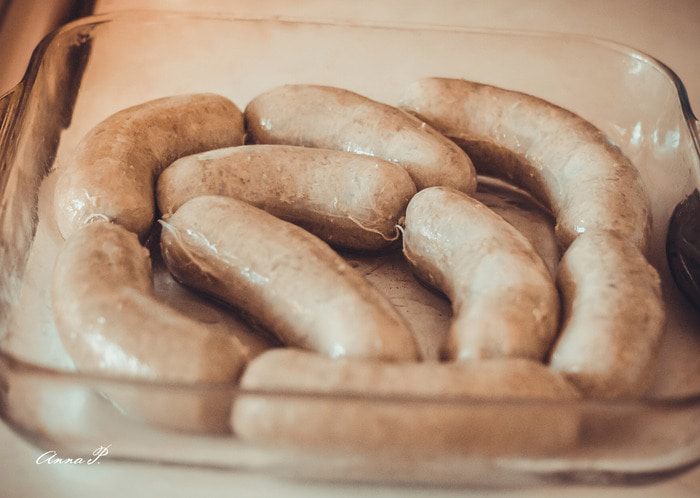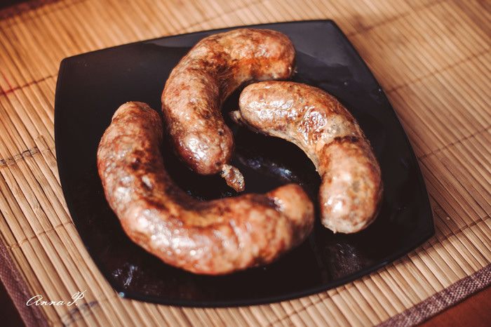 Противень смазываем смальцем/натуральным салом и укладываем в него колбаски. Выпекаем 20-25 мин в духовке при температуре 200 градусов по С.