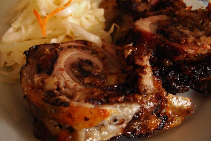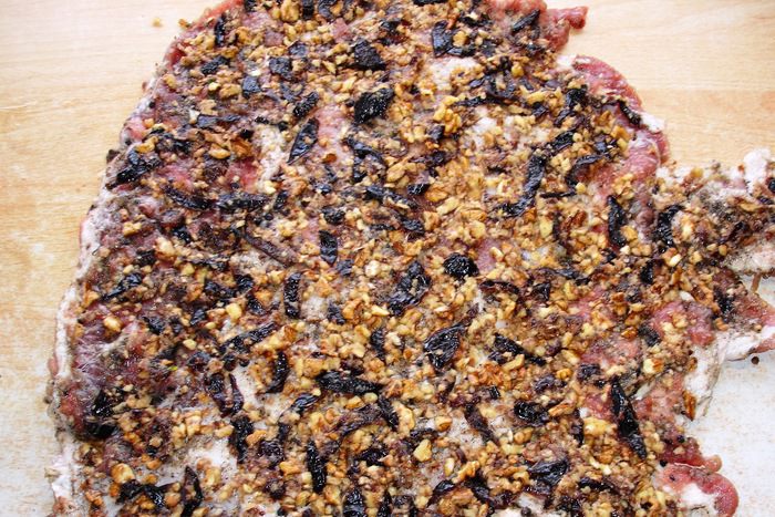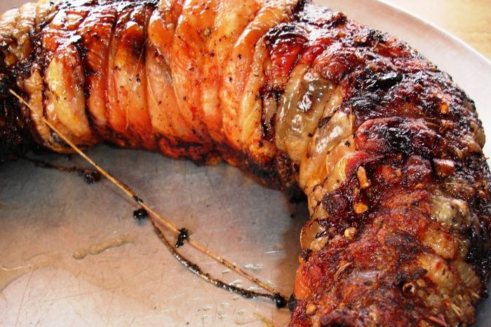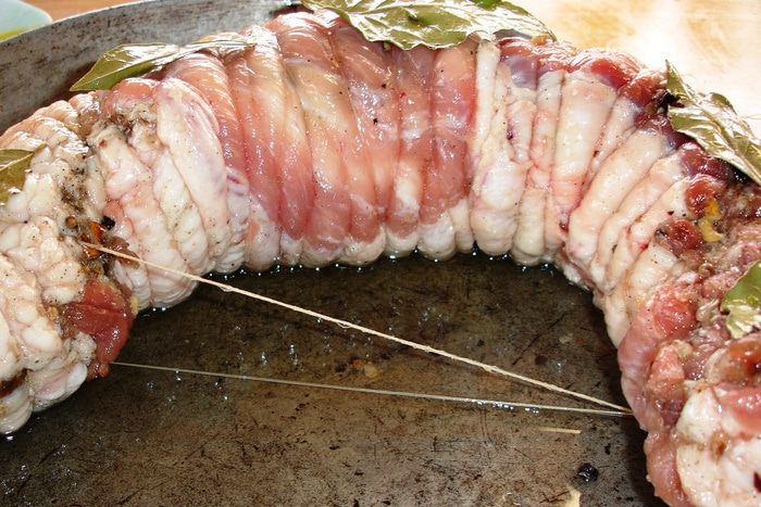 Пропускаем чеснок через пресс, смешиваем с молотым перцем (я еще немного добавляла смеси перцев горошком - белый, розовый и еще какой-то, предварительно растолкла их). Добавляем 2-3 ст ложки растительного рафинированного масла, смешиваем и натираем этим свинину с обеих сторон. Сворачиваем рулетом и оставляем мариноваться на ночь.