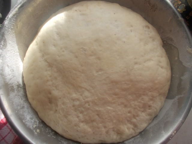 Замесить тесто,накрыть полотенцем и поставить в теплое место подходить.