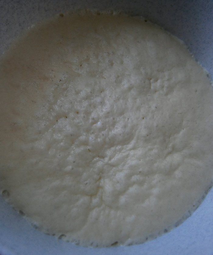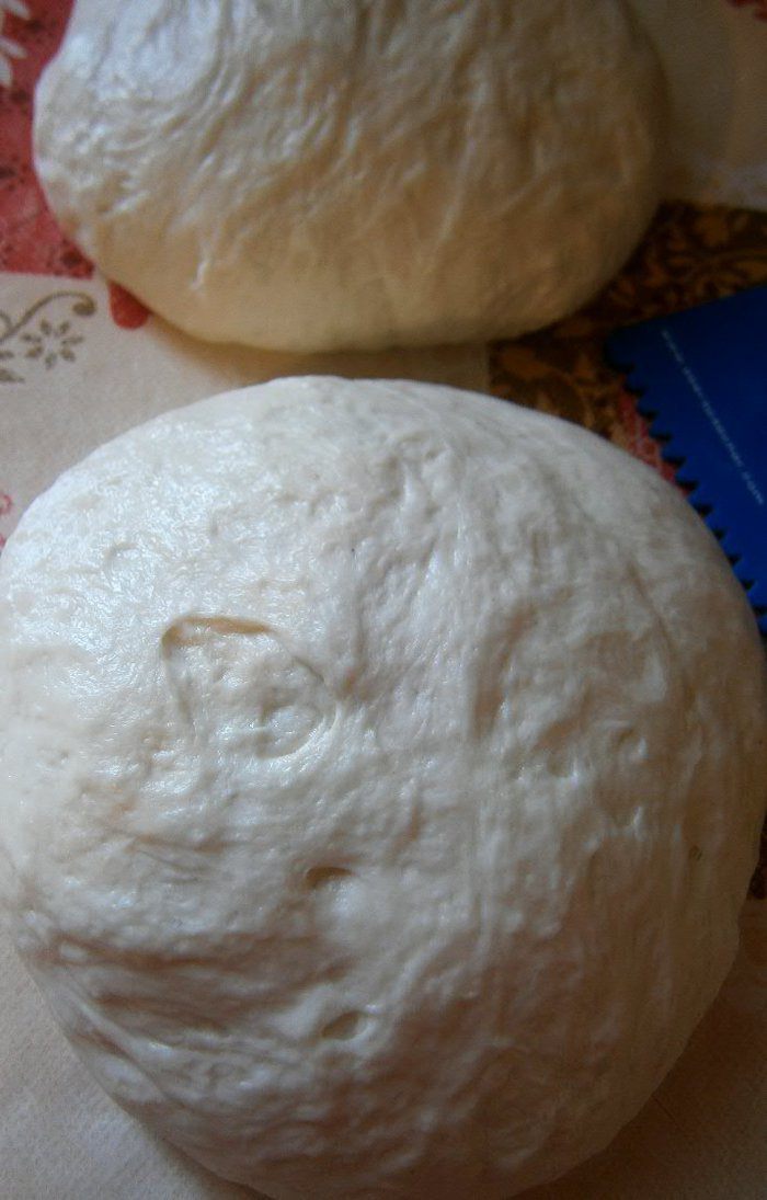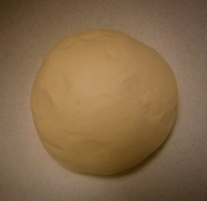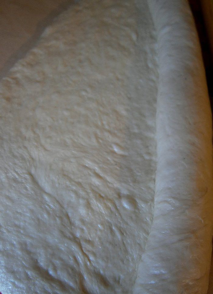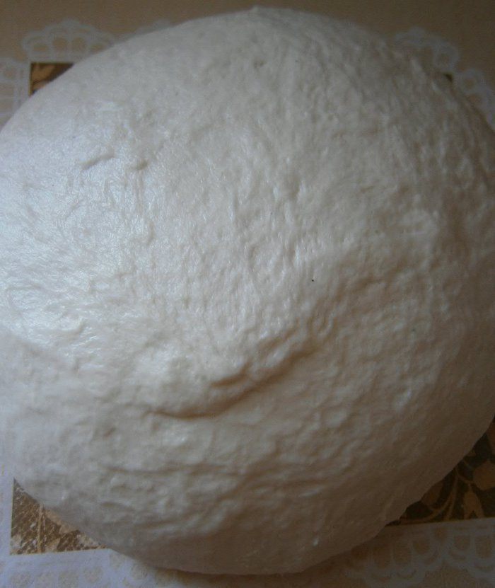 Скатать тесто в шар и уложить в смазанную растительным маслом глубокую миску. Накрыть плёнкой и оставить подходить при комнатной температуре 2 часа.