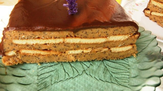 Достать десерт из холодильника, перевернуть на блюдо и полить глазурью. Убрать еще на час в холодильник.