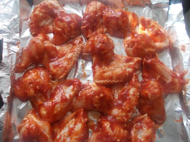 Крылышки обмазать со всех сторон и уложить на противень. Поставить в разогретую духовку 240-250 С, пока крылышки не станут румяными, в середине процесса,можно перевернуть.