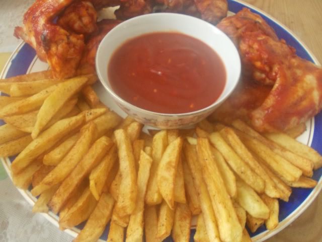Недавно готовила крылышки барбекю с коричневым сахаром от Яны, была просто в восторге, очень вкусно.И вот меня понесло, решила я поэкспериментировать с соусом и на гарнир приготовить картошку фри, что я делаю довольно редко, можно сказать, вообще не делаю. Но как говорится,"иногда можно"