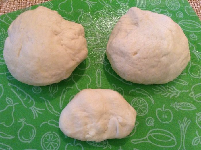 Тесто разделить на три куска. Один маленький и два равных.