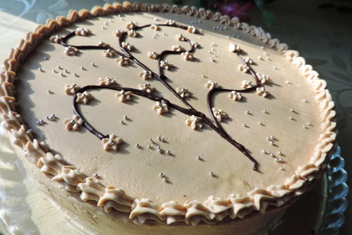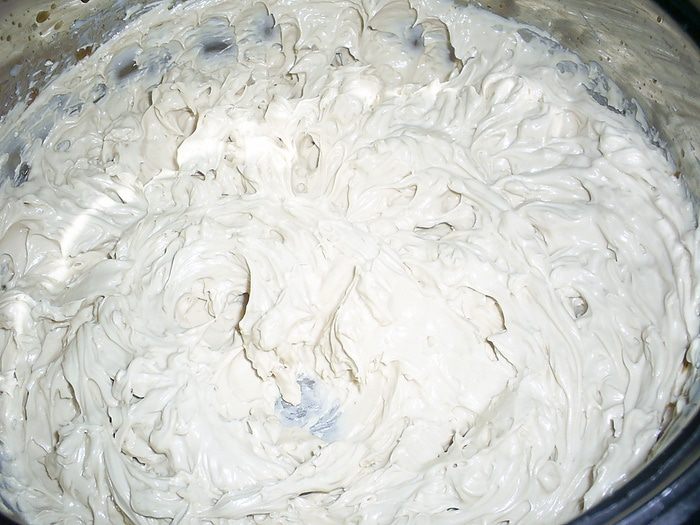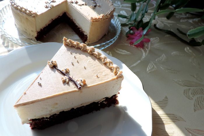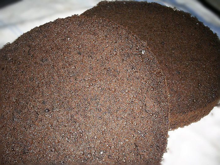 Разрезаем бисквит пополам на два пласта. Для торта нам понадобиться только половина бисквита, то есть один полученный корж. Однако я не советую уменьшать количество продуктов для бисквита и печь половинную порцию. Я уверенна, что вы найдете применение второй половине бисквита. Ее можно завернуть в пищевую пленку и заморозить, можно использовать сразу для приготовление еще одного десерта, а можно отдать на съедение домочадцам.