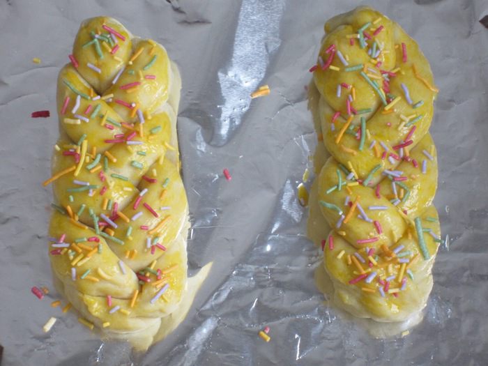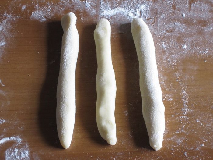 Из каждого куска теста раскатываем три жгутика (каждый жгутик 15 см)....