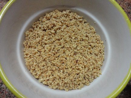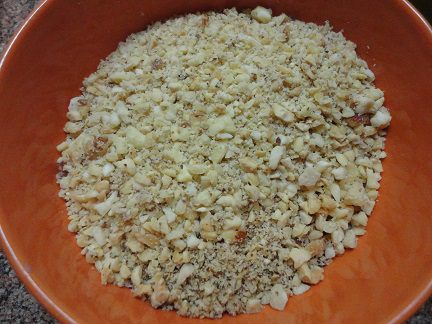 А миндаль вместе с грецкими орехами нарубить.