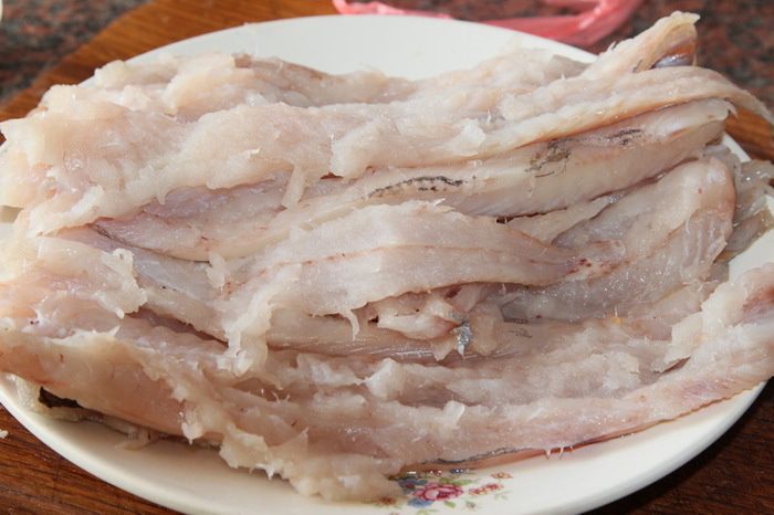 Рыбу очищаем от кожицы и разделываем на филе (можно взять любую, у меня был серебристый хек).