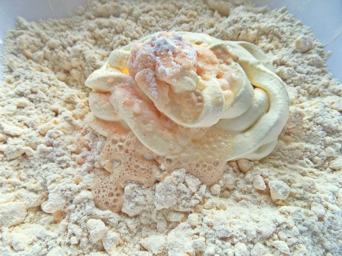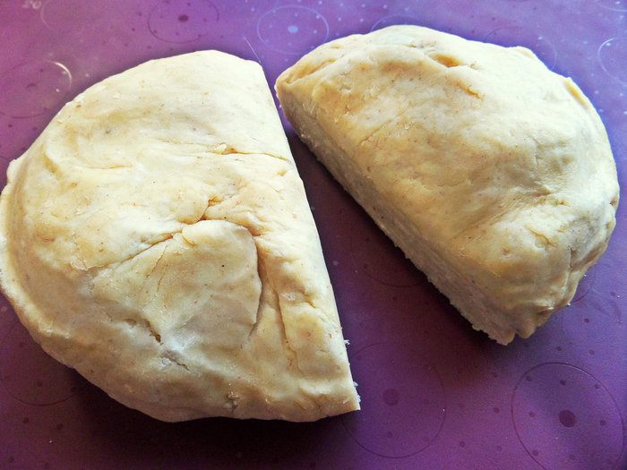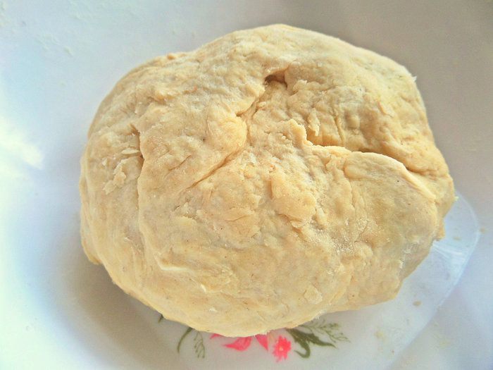 Если тесто сильно липнет к рукам, всыпать 1-2 ложки муки дополнительно. Мне понадобилось еще 20 г муки. Убрать в холодильник на несколько часов.