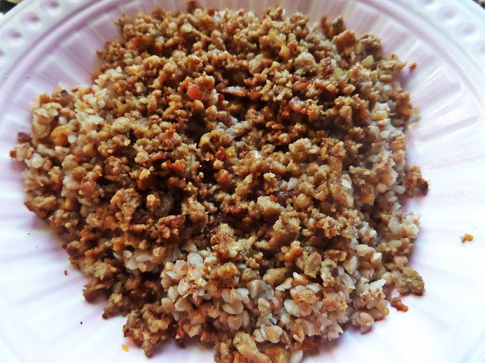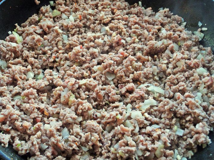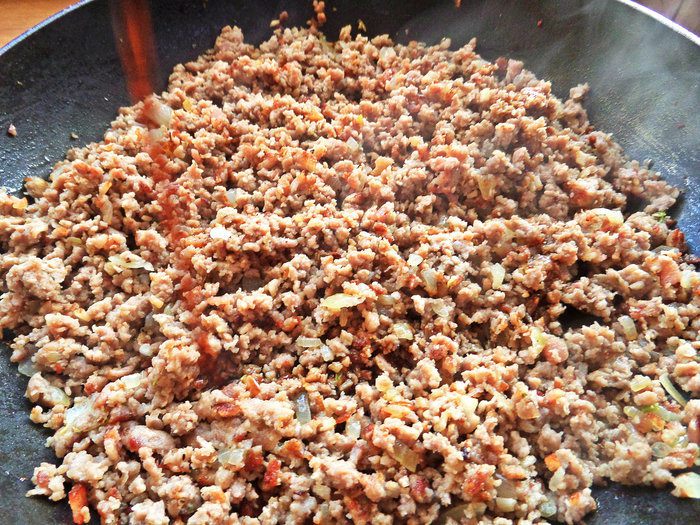 Обжарить минут 10, разминая вилкой, разбивая комочки.
