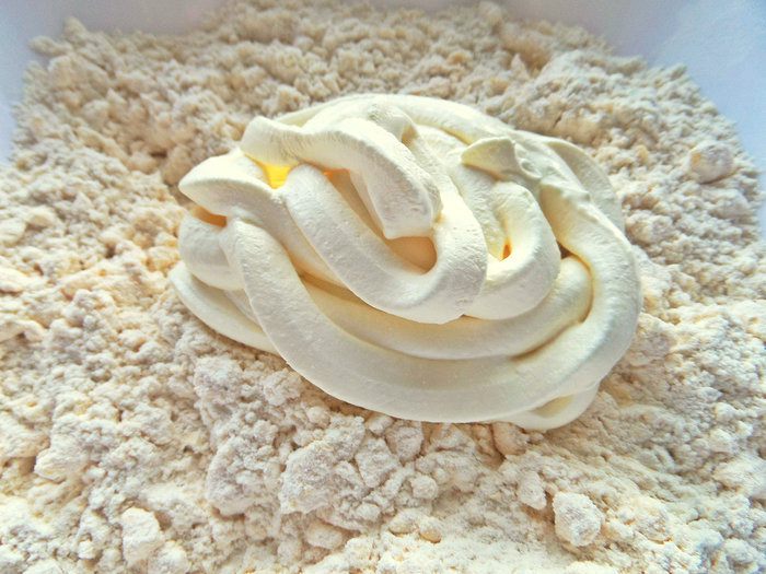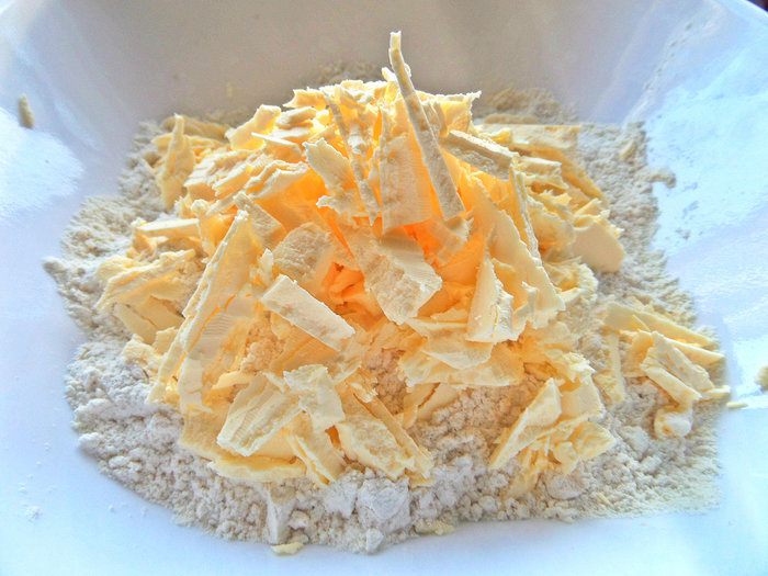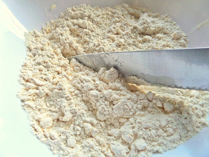 Холодное масло покрошить в муку. Пока берем 280 г муки.