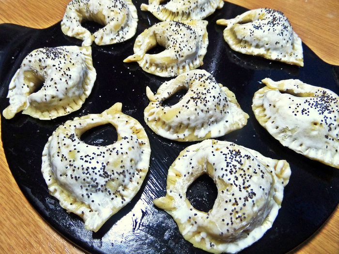 Сразу из духовки пирожки хрустящие, но если подержать накрытыми, станут мягкими.