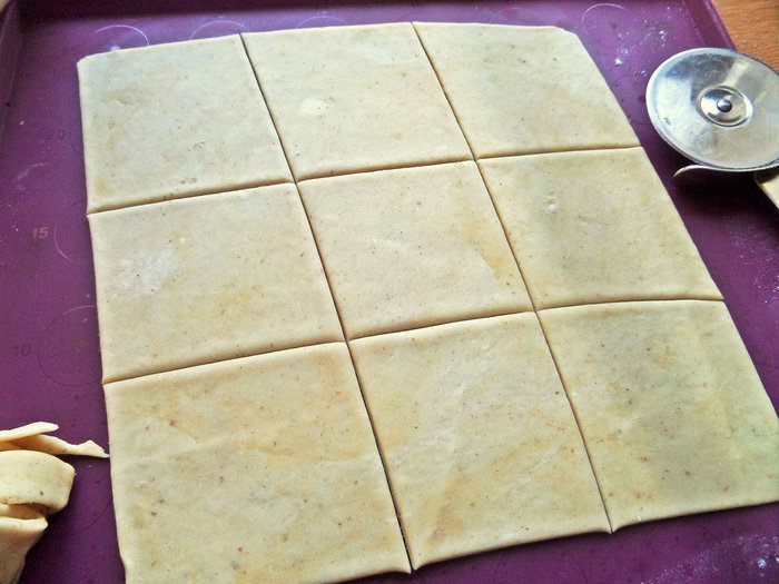 Пласт поделить на квадратики размером примерно 7-8 см, остальное обрезать.