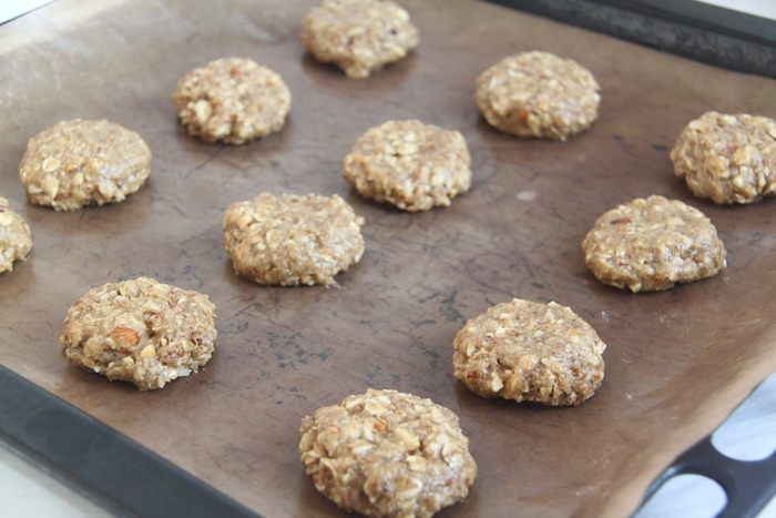 Смачивая руки водой, сформировать небольшие колобки (у меня получилось 12 штук), выложить на противень, придавить ладошкой. Выпекать примерно 15 минут.