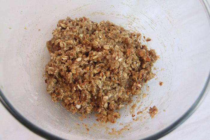 Добавить к вышеуказанной смеси миндаль, замесить тесто.