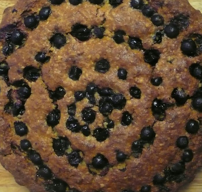 Овсяные хлопья измельчить, затем в чашу измельчителя добавить миндальный орех и прокрутить еще немного, орех не должен быть очень мелким. Муку просеять, овсяные хлопья соединить с мукой и разрыхлителем, добавить ванильный сахар, корицу. В тыкву добавить растительное масло и перемешать с сухими ингредиентами. Чайную ложку соды погасить яблочным уксусом, вылить в тесто и хорошо перемешать ложкой.