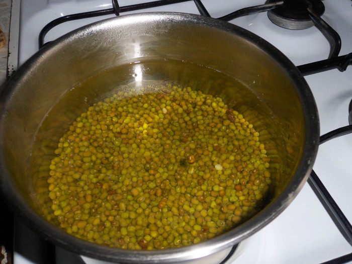 В кастрюле воду довести до кипения. Варить маш на медленном огне до готовности около 20 минут. Не солить! В соленой воде бобы не раскроются!