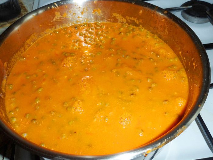 Всыпать в кастрюлю вареный маш, тертый мускатный орех, молотый имбирь и пропущенный через пресс чеснок. Довести до кипения, прогреть на медленном огне около 3 минут.