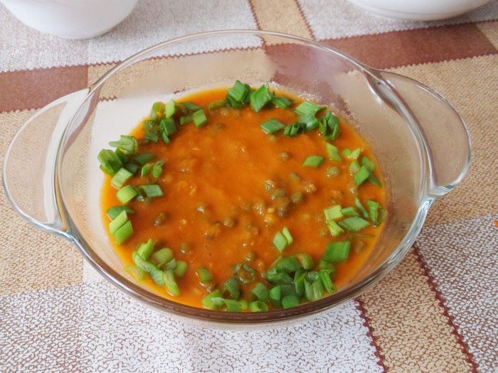 При подаче посыпать любой рубленой зеленью. У меня зеленый лук. Приятного аппетита!