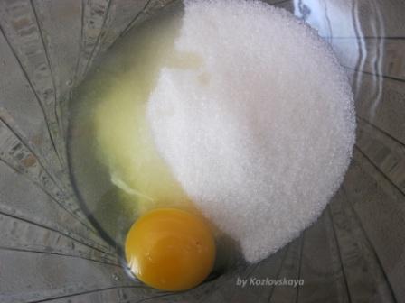 Яйцо смешать с сахаром и ванилином до светлой массы.