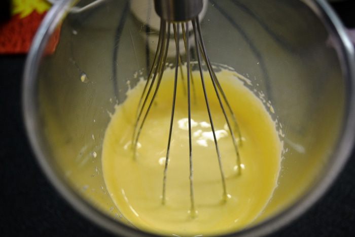 Яйцо с сахаром взбиваем добела.