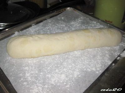 Тесто выложить в миску, смазанную растительным маслом, накрыть пленкой и убрать в теплое место на 30 минут, затем обмять.