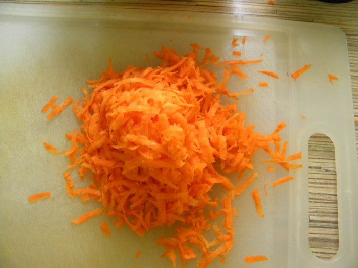 Нашу морковь жарим на сковородке, кладем сахар, потом муку, до красивого золотистого цвета жарим.