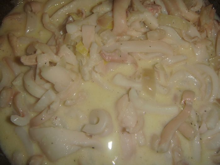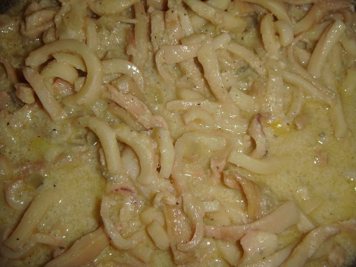 Нежная сливочная паста с кальмарами.