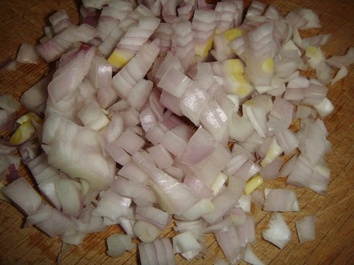 Лук почистить и нарезать кубиками.
