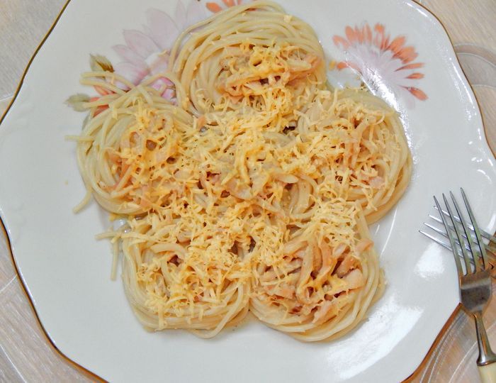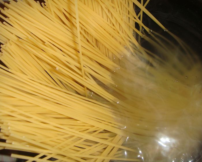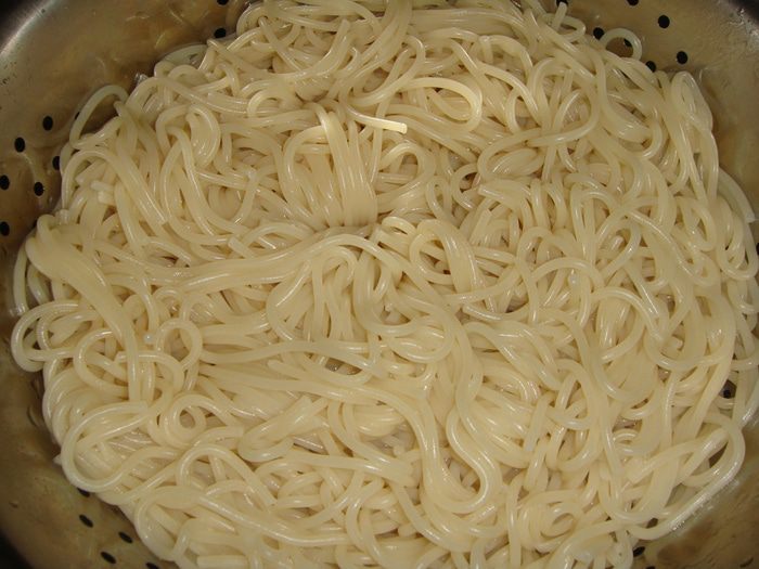 Отварить спагетти.