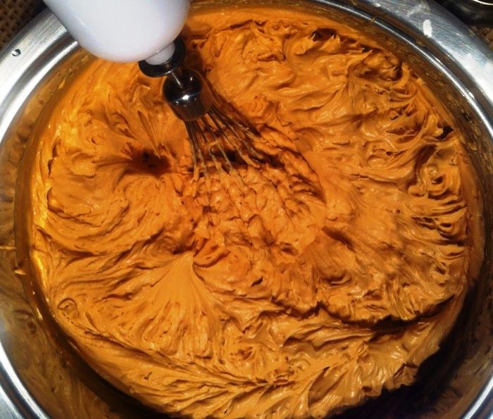 На следующий день взбиваем загустевший крем, начиная с малой скорости, постепенно ее увеличивая. На большой скорости взбиваем очень короткое время, чтобы крем не свернулся.
