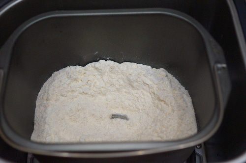 Все сухие продукты засыпаем в хлебопечку, смешиваем.