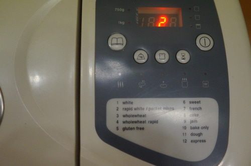 Устанавливаем программу:вес 750 г, режем - французская печка.