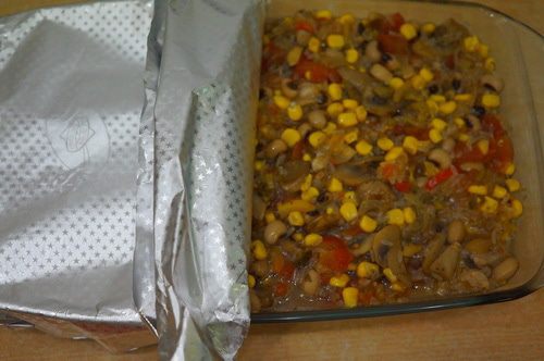 Пока запеканка готовится, напишу рецепт сальсы (соус) мексиканской. Помидоры свежие -8 чашек,очищенных от кожуры, мелко нарезанных. Лук репчатый - 2.5 чашки, мелко нарезанного. Болгарский перец (у меня зеленого цвета) - 1.5 чашки, мелко нарезанного. Перец халапеньо (я такого не знаю, потому брала самый острый стручковой) -1 стакан, тоже измельченный. Чеснок -6 зубков, мелко нарезанного. 2 чайные ложки тмина, 2 чайные ложки молотого черного перца, 3-4 ложки соли (я брала по вкусу), 40 г сахара, 40 г уксуса. Смешать все и довести , на медленном огне, до кипения. 10 минут кипятить. Разложить в стерильные маленькие банки, закрыть крышкой и поставить на водяную баню на 10 минут. Сальса готова. Удовольствие на всю зиму.