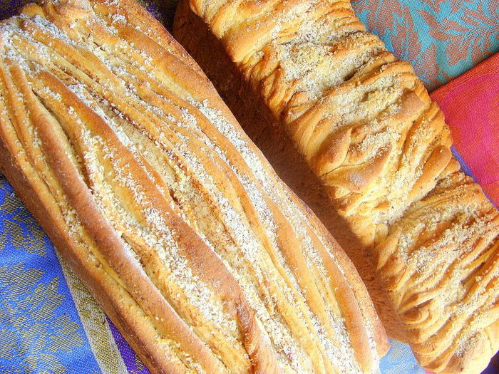 Дрожжи и сахар развести в теплом молоке. Маргарин растопить, немного остудить, смешать с подошедшими дрожжами. Добавить просеянную муку и соль, замесить тесто. Оно хорошо отходит от посуды и рук. Дать тесту подойти втрое, обмять и дать подойти еще раз. Данное количество теста расчитано на два изделия.