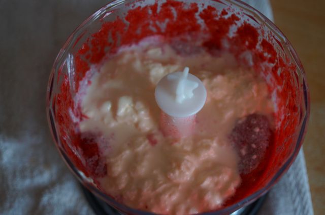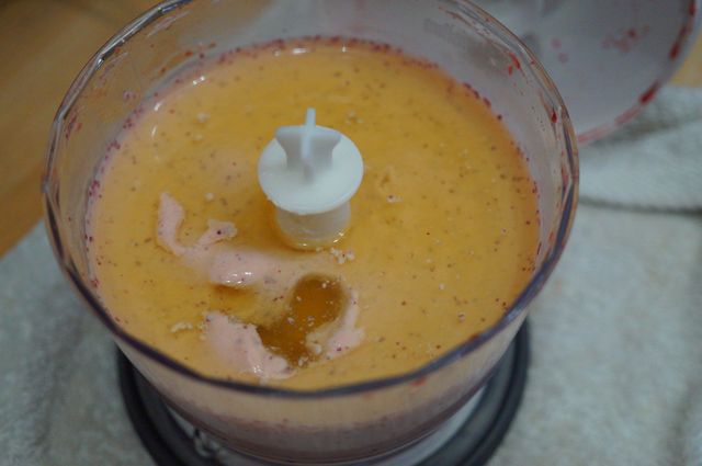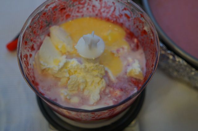 Смешать с сыром, кремом, молоком, сахаром, экстрактом/ликером.
