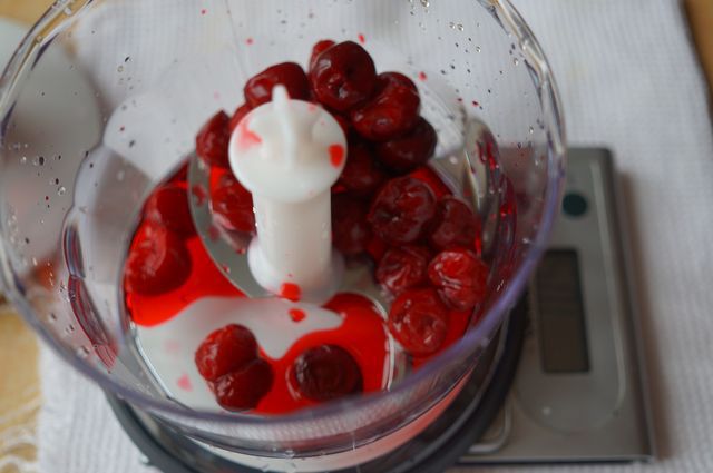 Вишню разморозить, измельчить в процессоре.