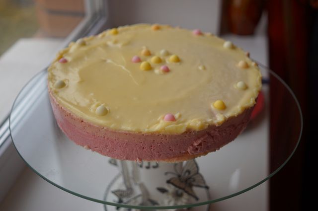 Вылить поверх вишневого чизкейка, поставить в холодильник.
