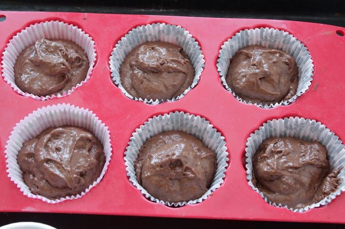 Для маффинов смешать миксером все ингредиенты, выложить в формочки.