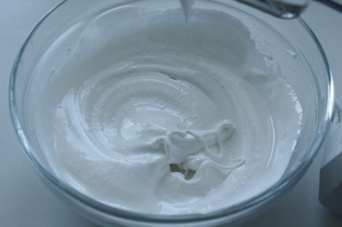 Поставить чашку на водяную баню и взбивать миксером 10-15 минут. В конце добавить лимонной кислоты.
