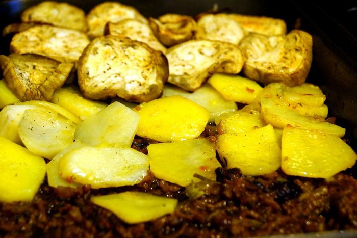 Картофель и баклажаны мы предварительно запекли в духовке (см. Шаг 1).