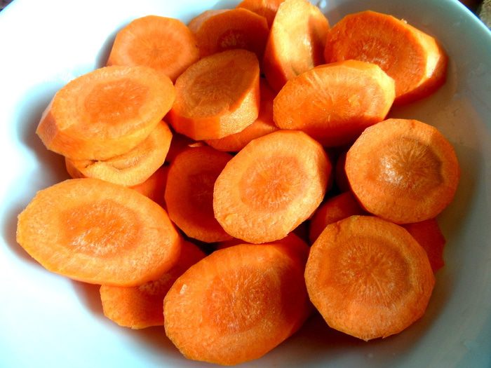 Морковь нарезать крупными колечками.