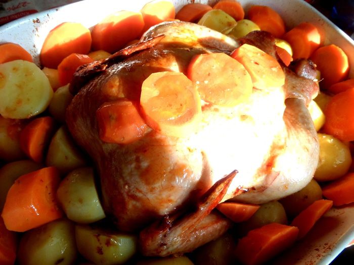 Не буду показывать вид растерзанной курицы...,все и так его знают))) Попробуйте запечь курочку с морковкой и Вы удивитесь,на сколько она вкусная!!!
