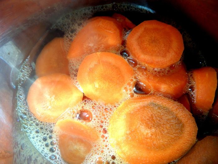 В это время или заранее чистим овощи.