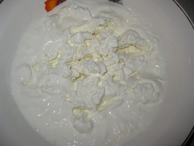 Перемешать творог и сметану.