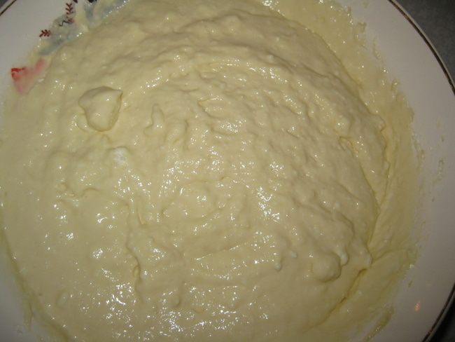 Добавить муку, сахар, взбить яйца. Все перемешать. Соду погасить уксусом и оставить тесто на 30 минут.