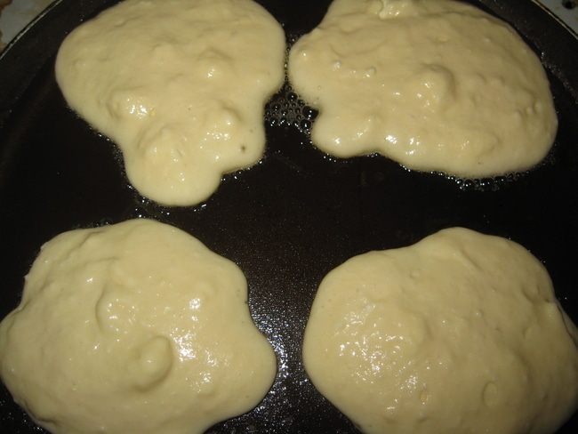Выпекаем блинчики с двух сторон на растительном масле.