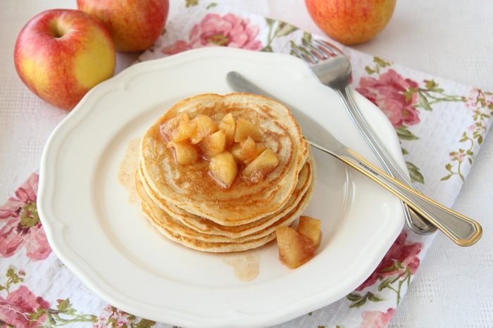 Для топпинга два больших яблока почистить и нарезать небольшими ломтиками.